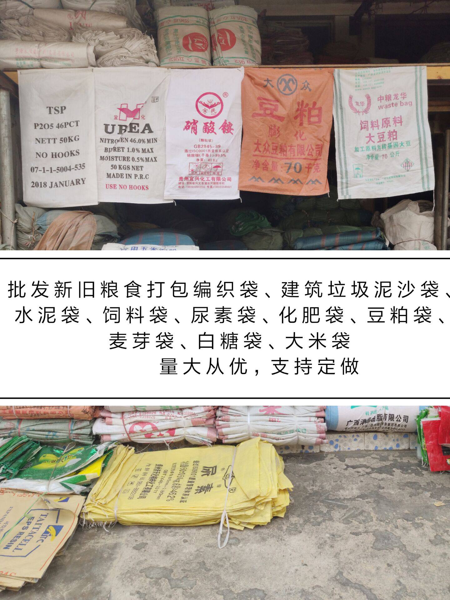 Brand new with endometrial 30 kg organic fertilizer 55X90 grey disposable 50 kg sediment bag 55X95 Used feed bag 60X100 Used 50 kg soymeal bag 65X105