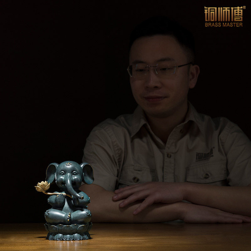 Copper Master Whole copper wiring Puxin Boshu Sa rides Pup to recruit the wind shui elephant craft gift decoration home decoration
