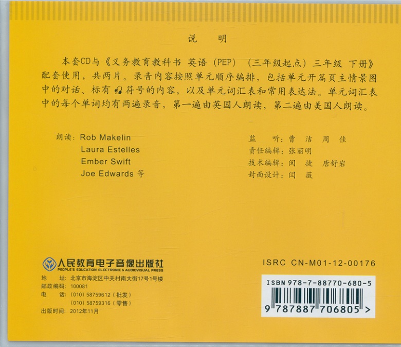 Human education edition PEP Primary school English third grade Book II Supporting listening text reading CD CD Car disc