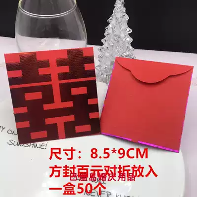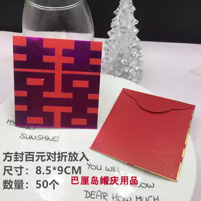 Bali wedding red envelope Wedding supplies Chinese style double happiness red packet creative personality square envelope boxed 50 red