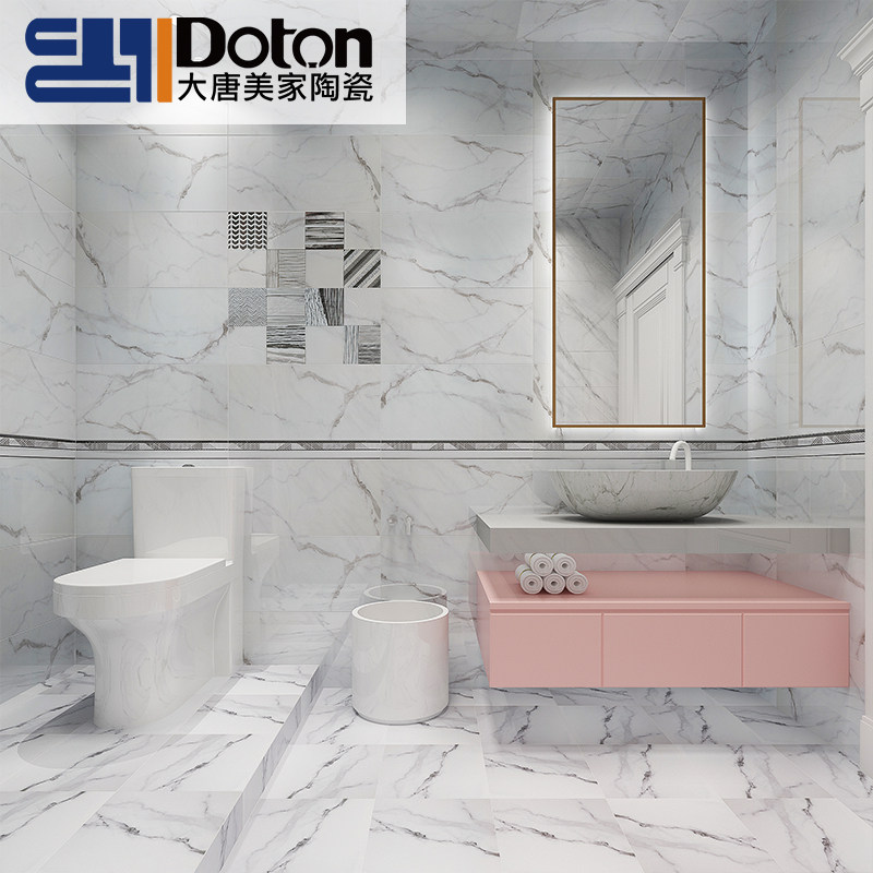 Jazz white wall tile matching Floor tile matching Waist line matching flower piece