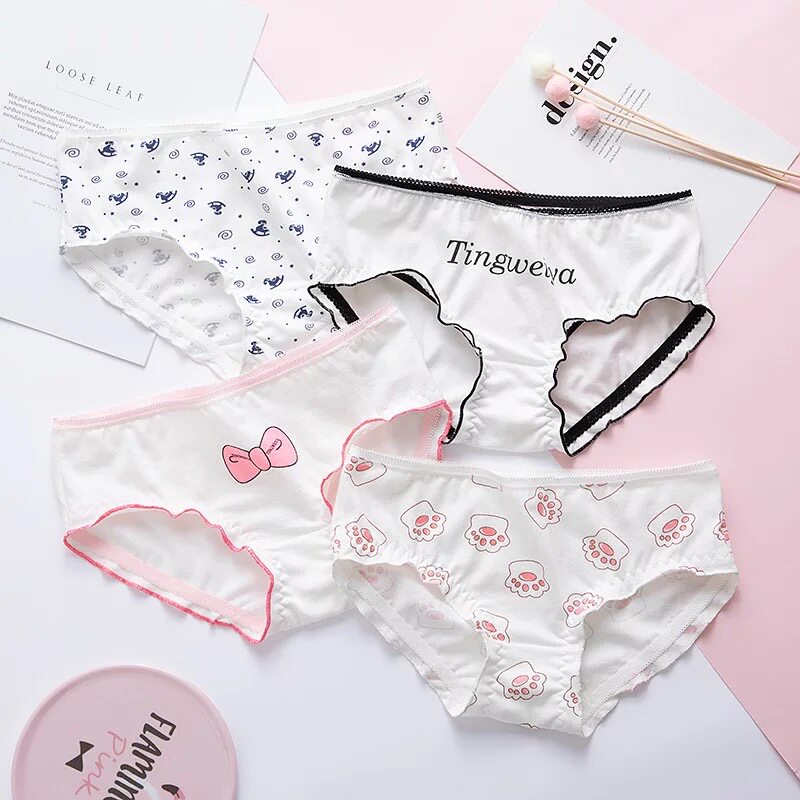 5 cartoon cute strawberry letter printed panties girls briefs cotton mid-low waist student trousers