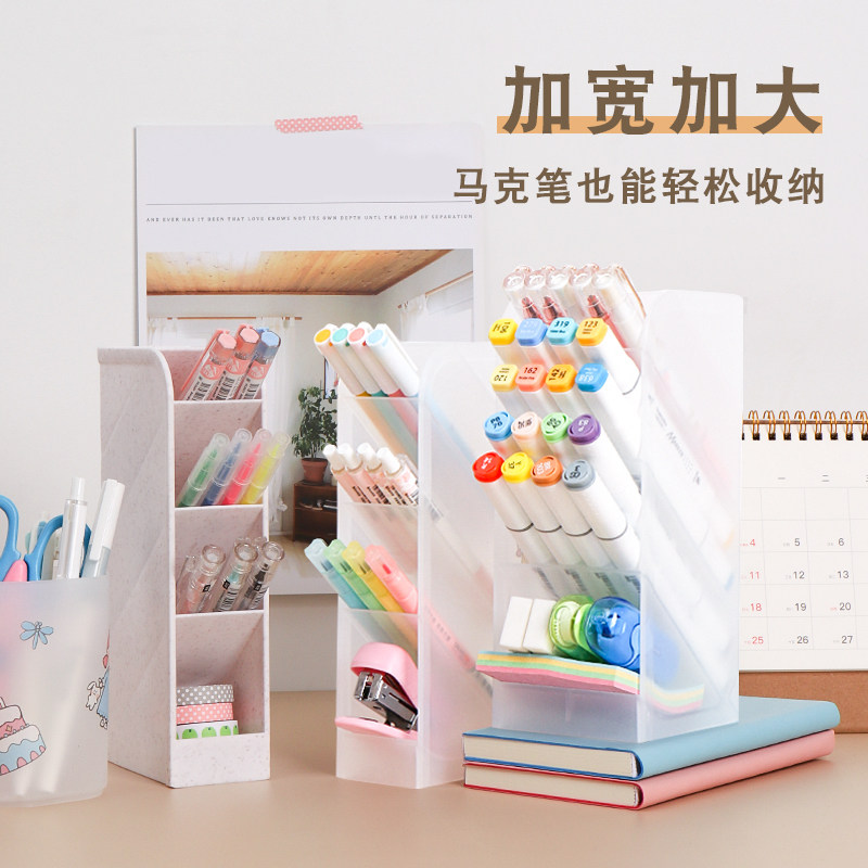 Oblique plug pen holder ins desktop storage box Girls creative fashion cute small fresh college student multi-function pen holder Large capacity stationery Transparent simple large classification grid net red pen box