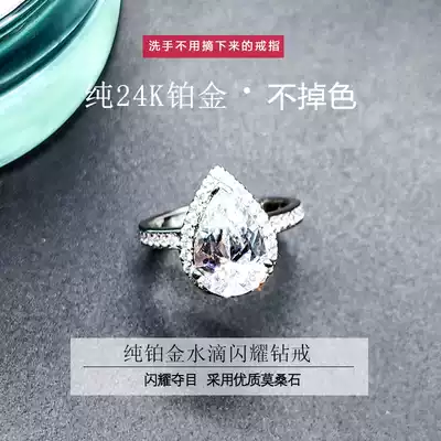 Imported Moisan 24k platinum water droplets set diamond ring marriage proposal diamond ring Fashion Net Red birthday gift