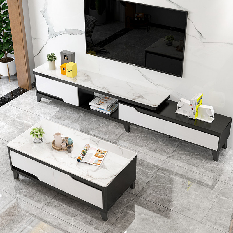 (White marble) telescopic TV cabinet 1 4 meters coffee table
