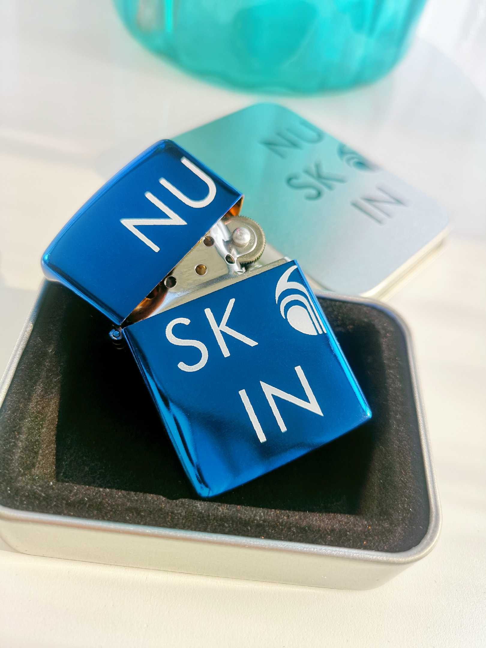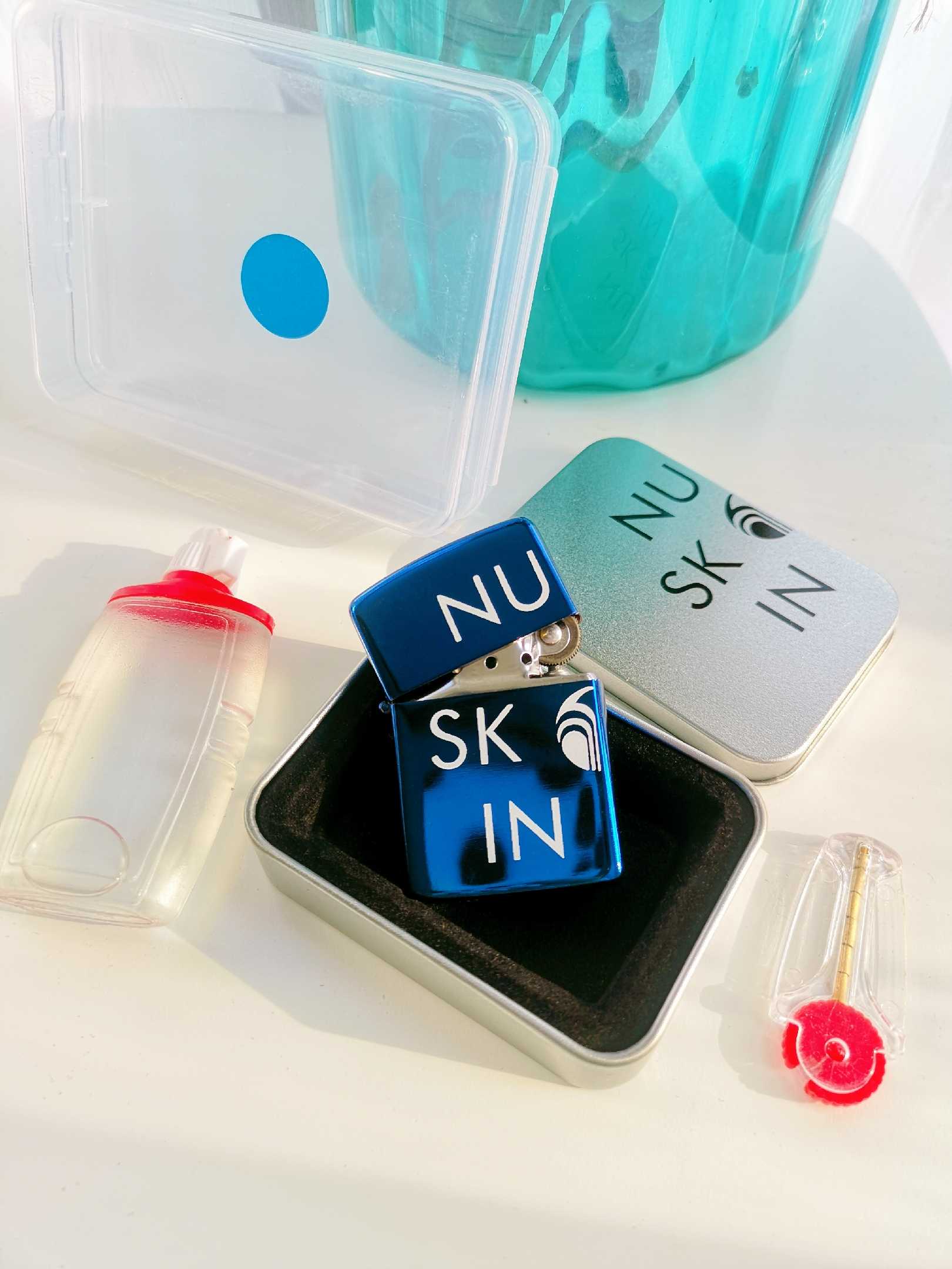 nuskin like the new perimeter NUSKIN windproof lighter Laser Colorful Baoshi Blue Color Print American Edition Flaw price
