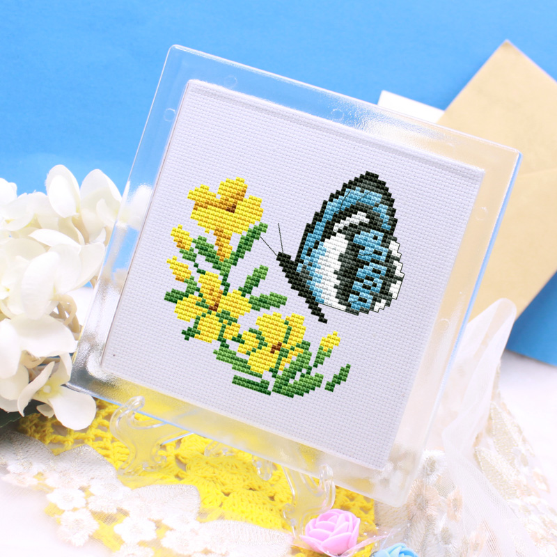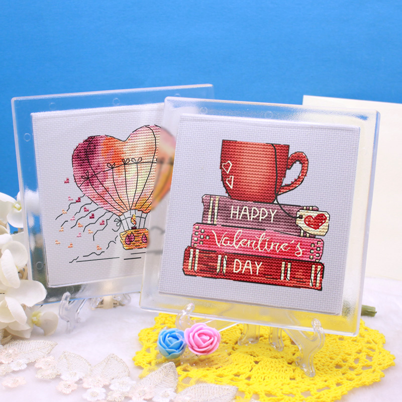 Tool DMC cross embroidered material acrylic cup cushion jug cushion transparent photo frame with bracket with 18CT embroidered cloth-Taobao