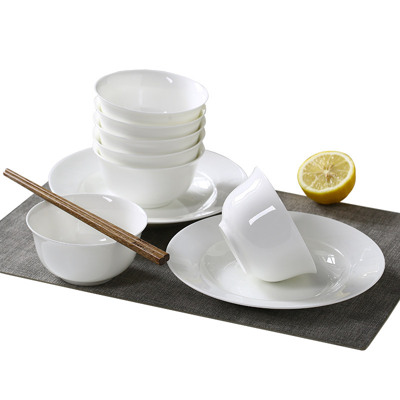 Jialan bone porcelain bowl Household ceramic dinner bowl Pure white plate Simple European dishes dish dish dish large soup bowl noodle bowl