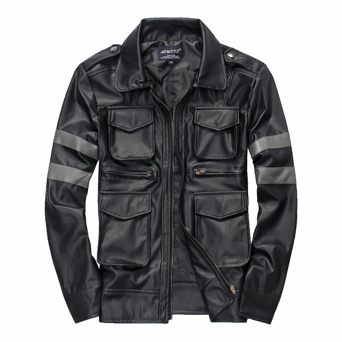 Personality retro fur coat men's locomotive clothes pu leather day system multiple bags capsized 100 lap men's locomotive leather jacket man