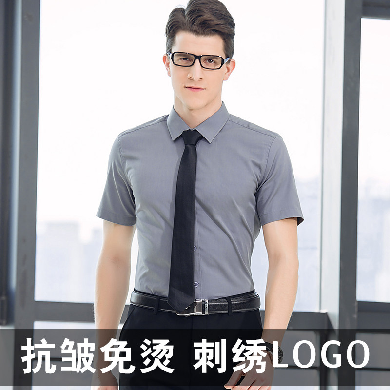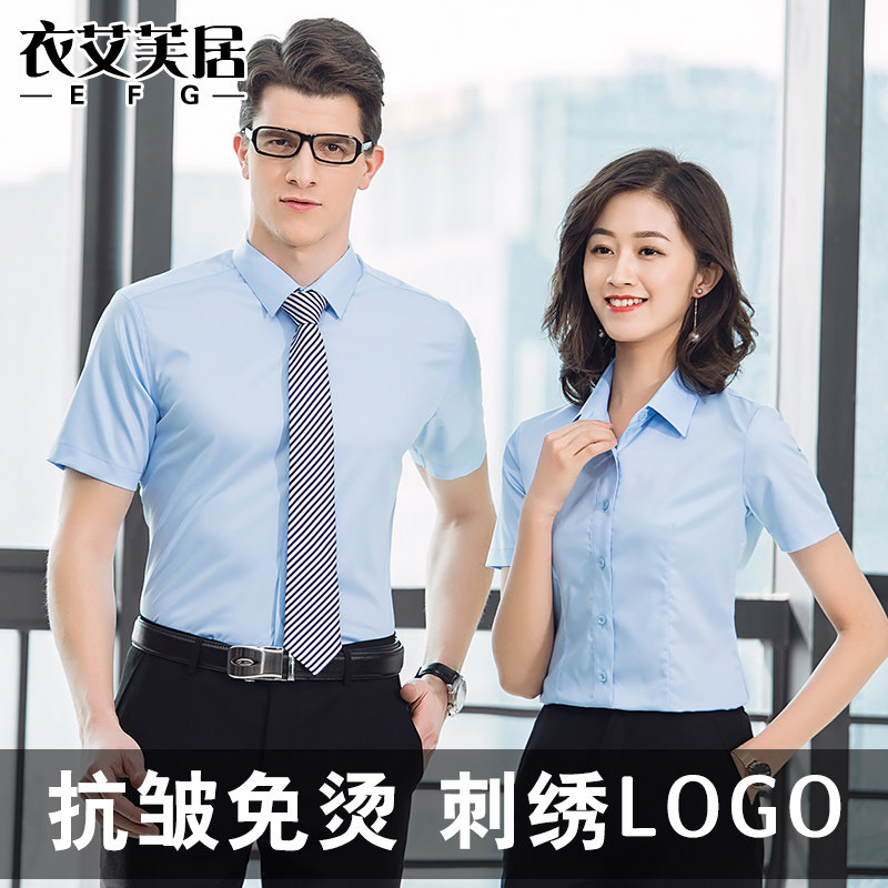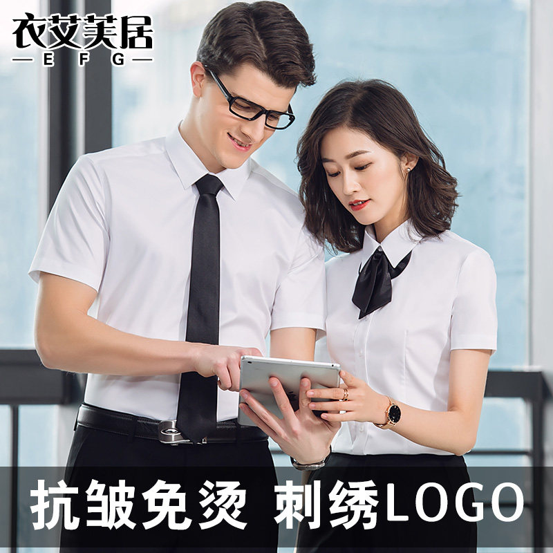High-end men's and women's professional wear with the same shirt short-sleeved overalls business dress Korean white shirt custom embroidered logo