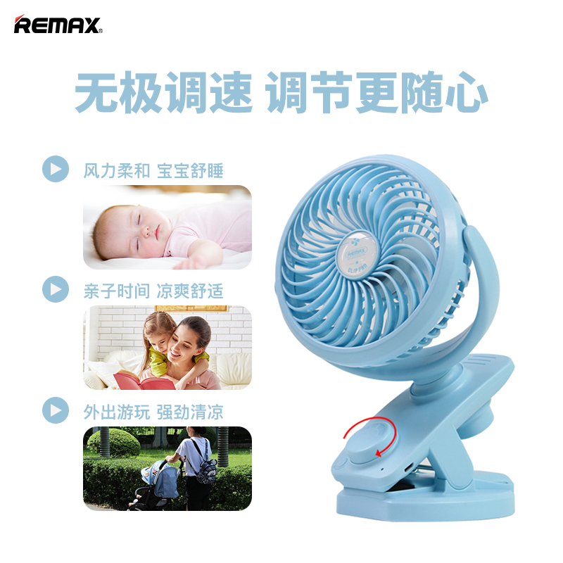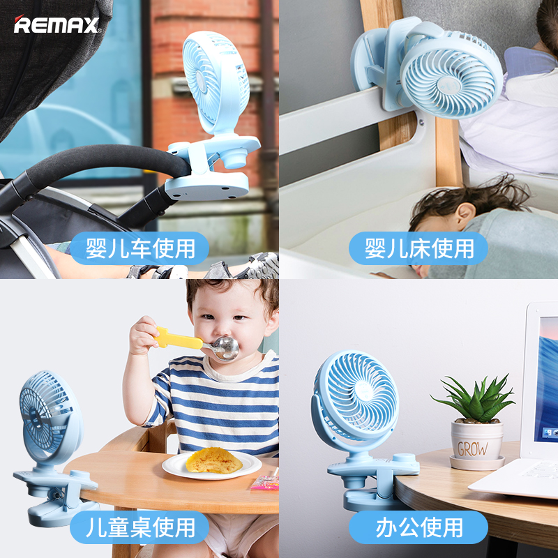 Remax clipable stroller small fan Automatic shaking head baby special charging Mute clip-on portable clip fan Electric fan Hand push mini bb out of the room Children's small usb electric fan for bed