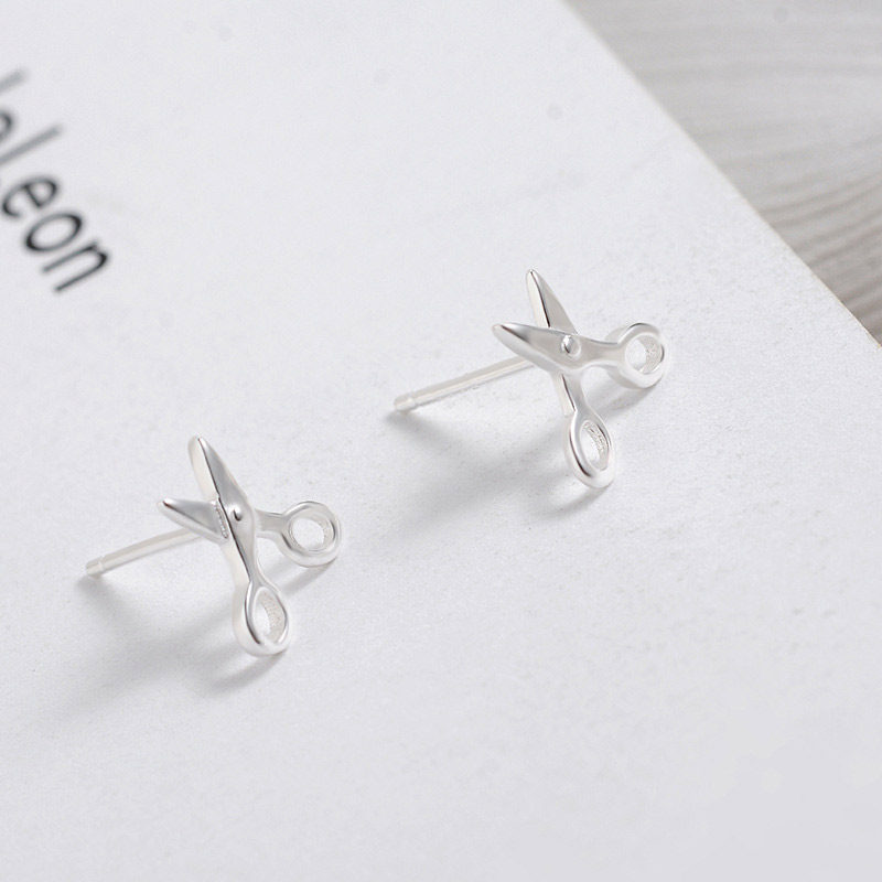 Ear needle temperament Japan Korean personality mini scissors s925 pure silver ear design earrings of female earrings