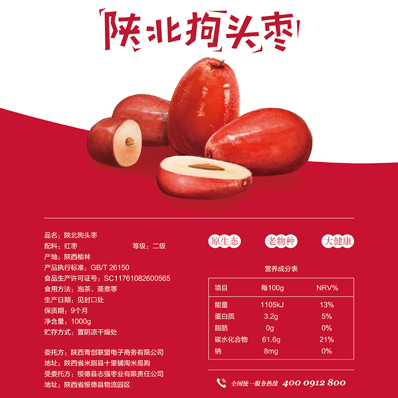 Shaanxi's old Joe dog head date 1000g Tite grade red date Shaanxi North peach flower China Yan'an special gift bagged free of washing and snacking