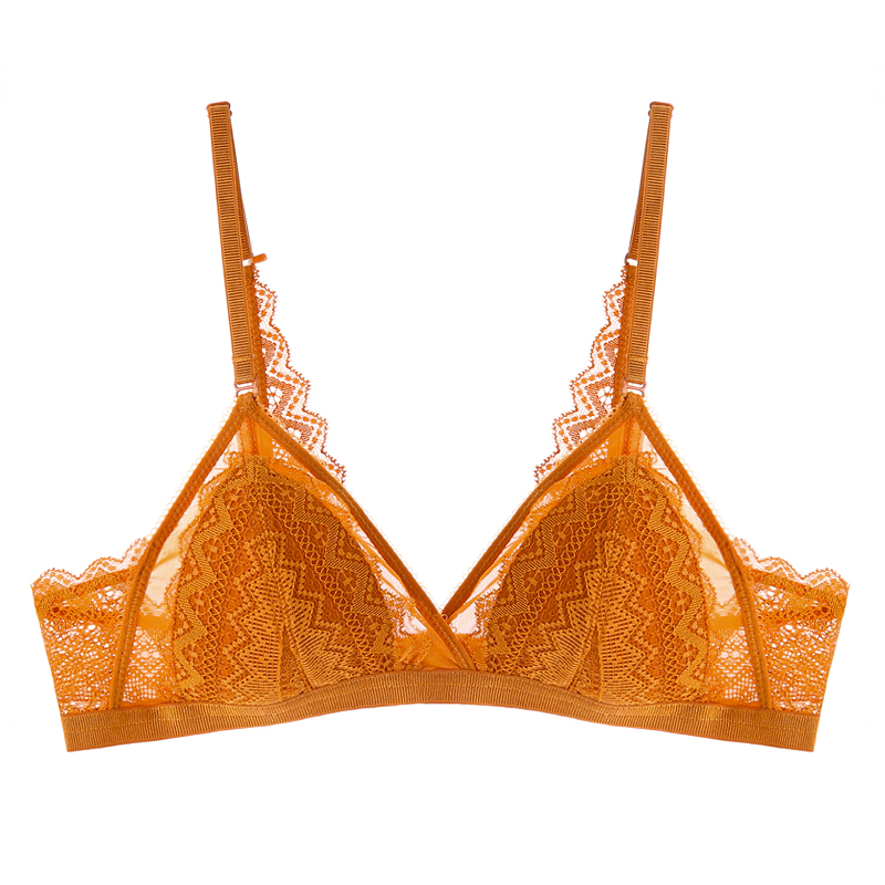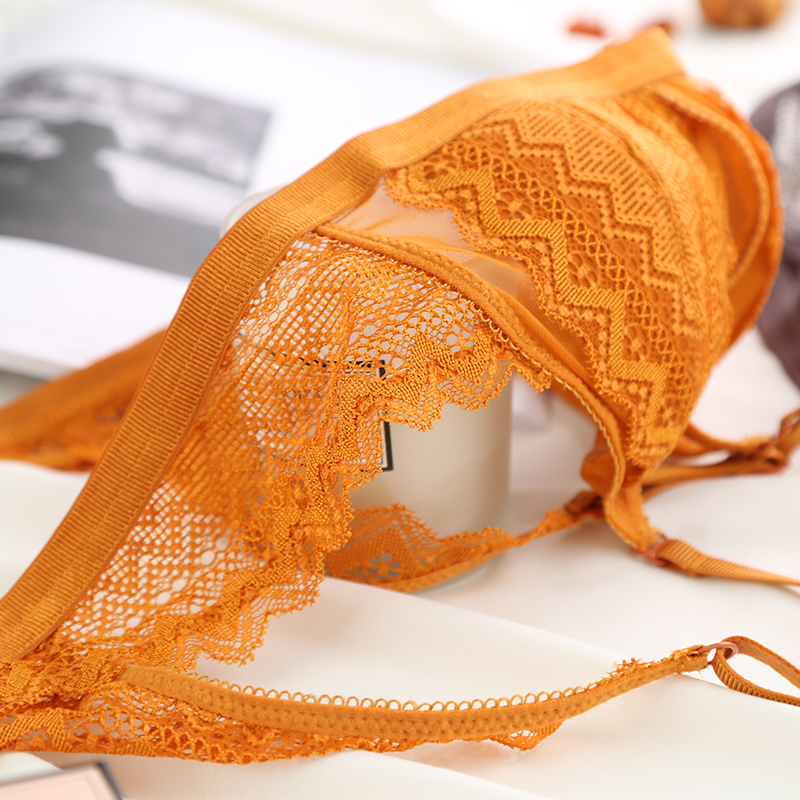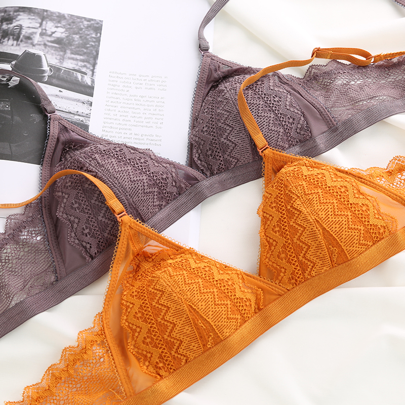 Triangle cup underwear Sexy lace no rim thin underwear French girl big chest show small bra Comfortable bra