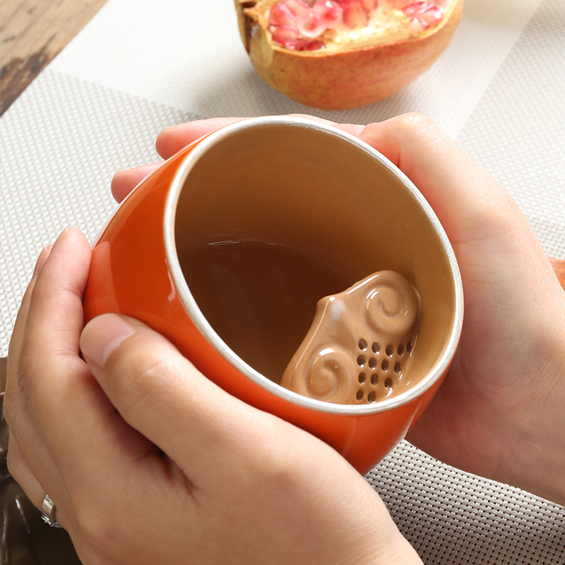 Things Ruyi large capacity Mark cup creative tea cup suit Persimmon Tea Cup Personality Tea Leaf Jars Delivery Box Dress