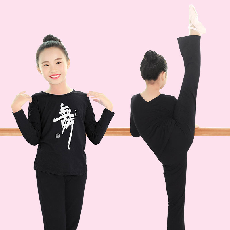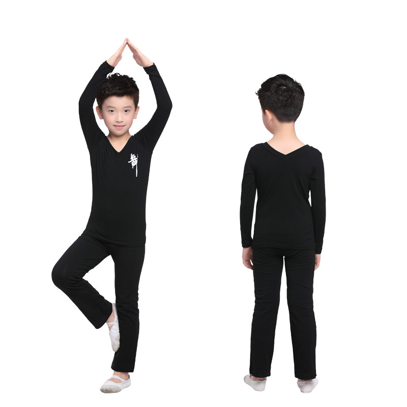 Children's dance clothes boys and girls spring and autumn V-neck long-sleeved ballet practice clothes cotton tops bottoming shirts performance clothes