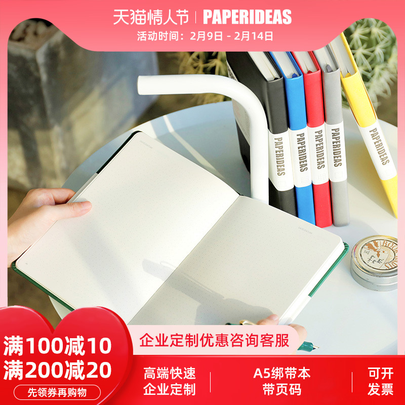 PAPERIDEAS Page Number Notepad A5 Notebook Leather Face Book Custom Logo Business Custom Blank Handbook Customization Handbook Checkered Simple College Student Literature and Art Ins Wind Point Array