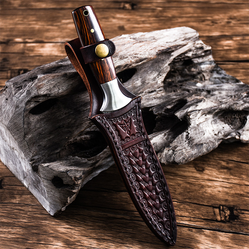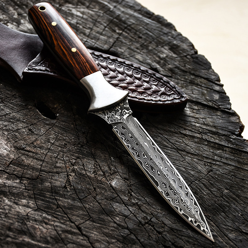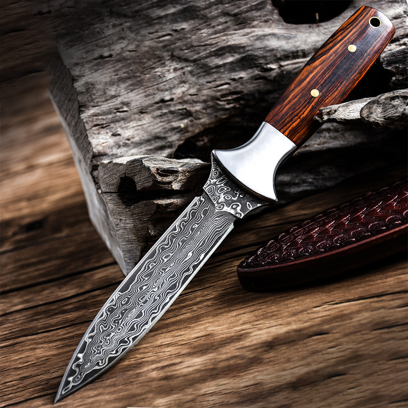 Wolf Outdoor Survival Knife with portable sharp high hardness tool to protect Damascus steel straight blade
