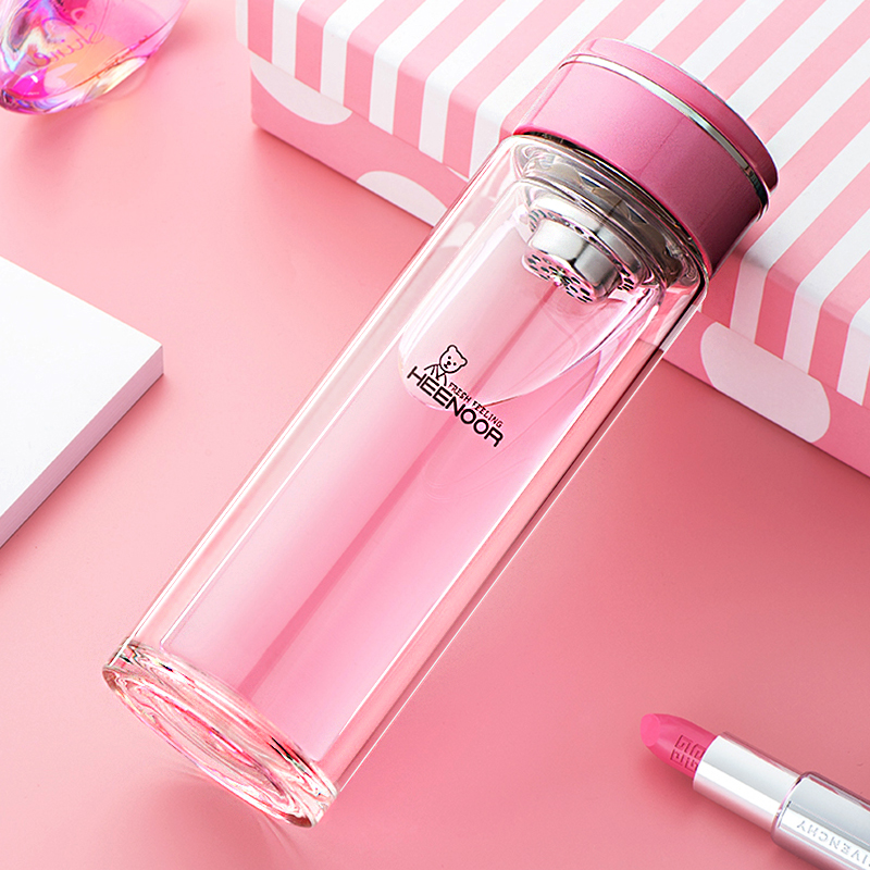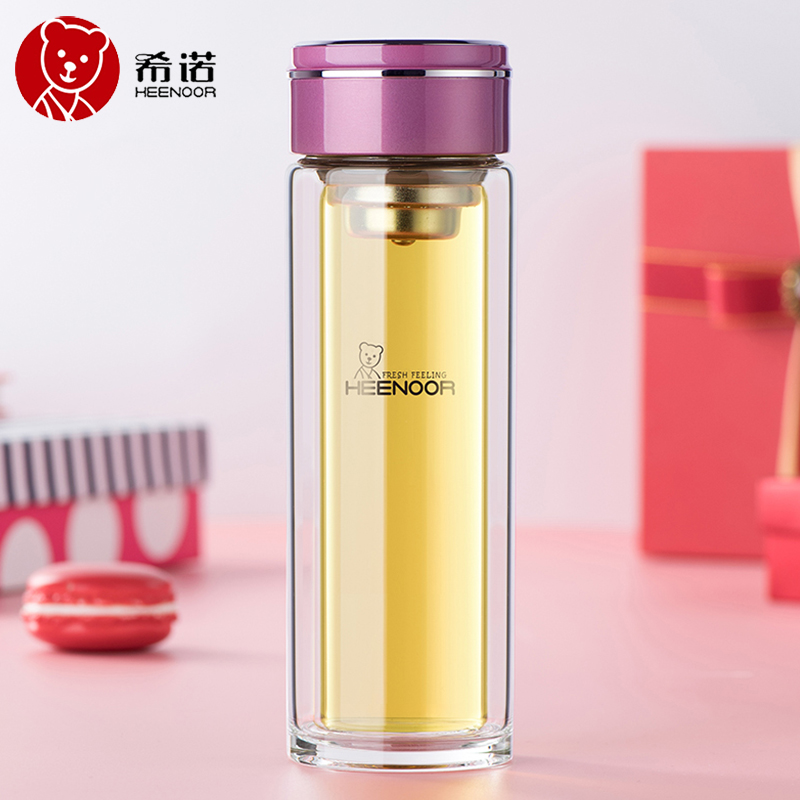 Sino glass double-layer thickened anti-scalding glass fashion portable tea cup flower tea cup with tea filter
