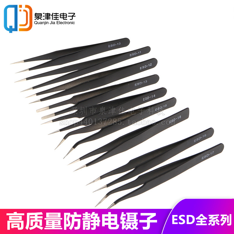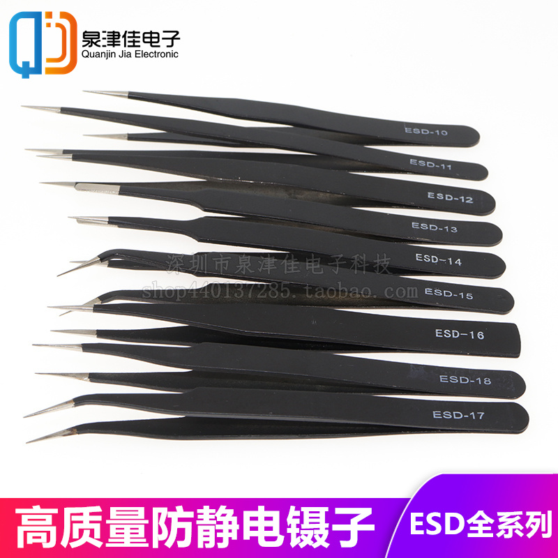 ESD-10 11 12 13 14 15 Stainless steel Antistatic Tweezers Pointed Head Flat Head Elbow DIY Tool