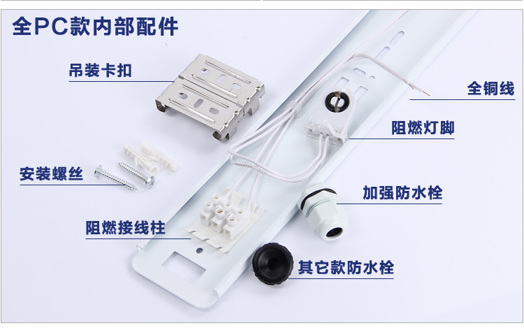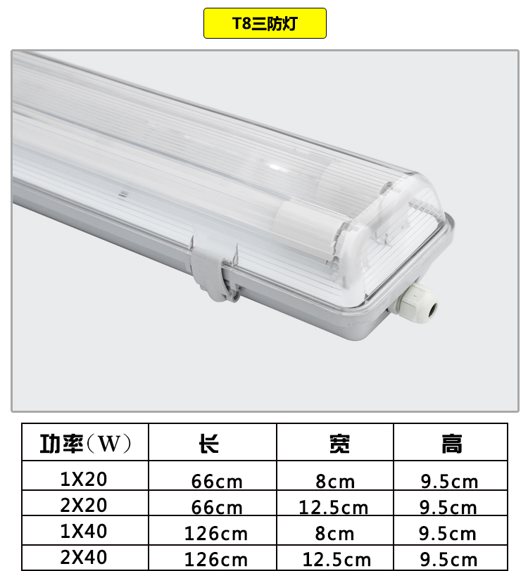 T8 three anti-lamp LED full set of waterproof and dustproof PC explosion-proof flame retardant 40W double tube fluorescent lamp Fluorescent lamp bracket lamps