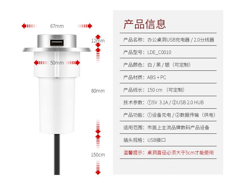 Bed head cabinet innate multi-mouth usb charging sofa pressed hide embedded round headboard Android Apple universal