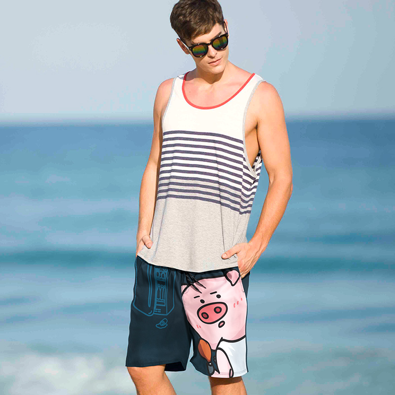 Speed Wave Cartoon Tide Card Beach Pants Men Big Size Shorts Shorts Swimsuit Pants Shorts Trunks Speed Dry Loose Pants Swimming Pants Anti Awkward