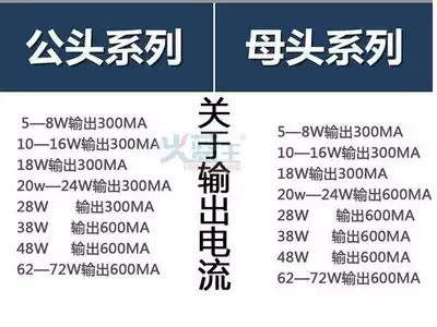 Male head 24W(600mA)58W female waterproof female head 10-16W waterproof male head 20W(600mA waterproof female 12-18W waterproof male head 12-18W
