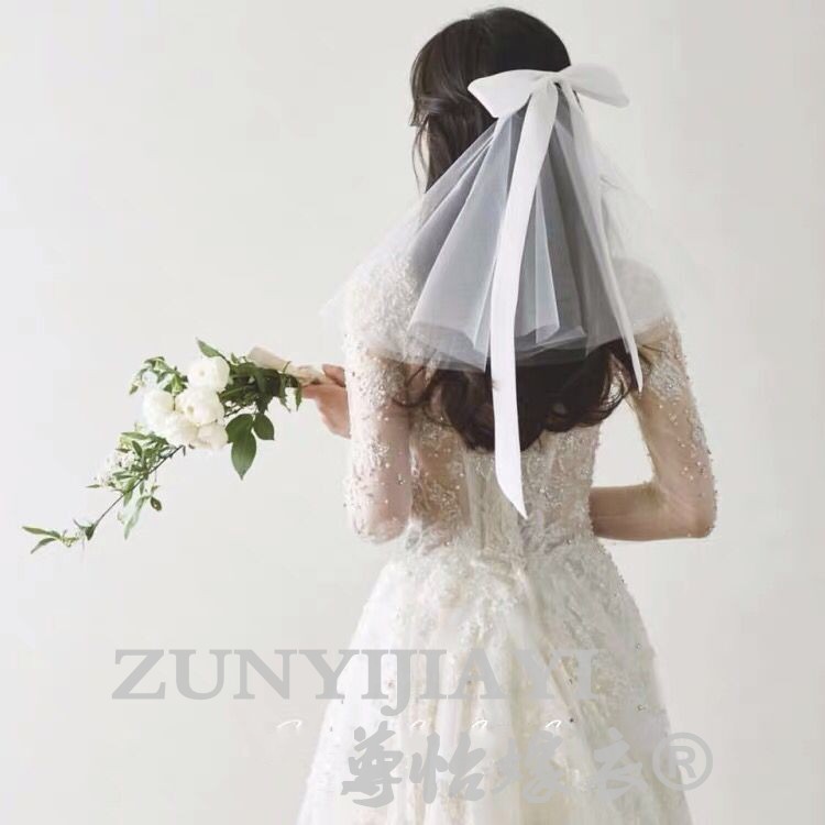 New butterfly knot short bridal head yarn neckline with small head yarn wedding dresses Yarn Head Accessories for Korean Fancy Head Yarn