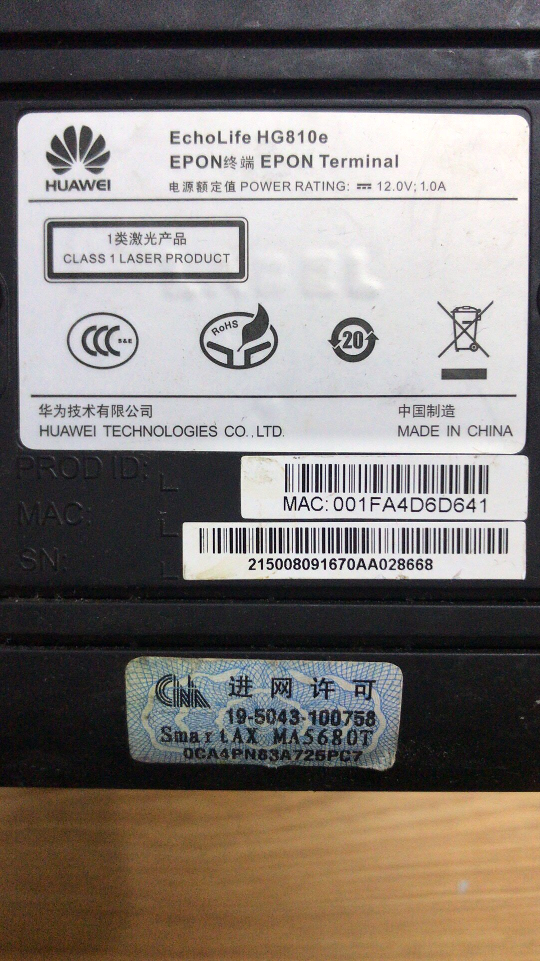 HG810E HUAWEI General Version ONU is suitable for Great Wall Radio and Electronic Mobile Broadband Gigabit EPON LIGHT