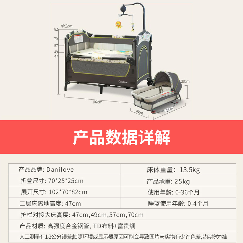 danilove baby cot splicing big bed foldable portable newborn baby multifunctional mobile bed bb bed
