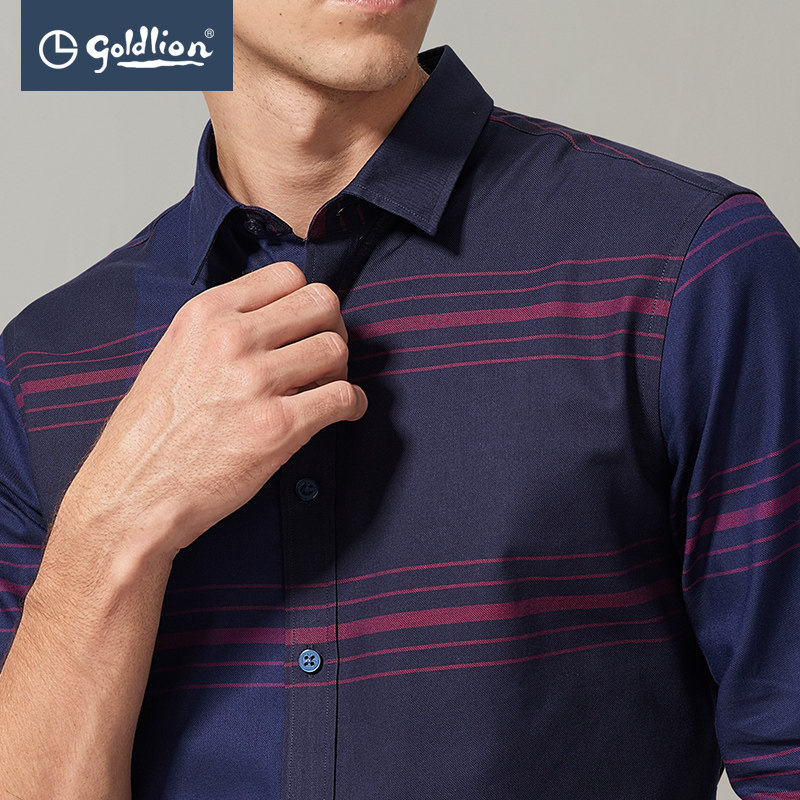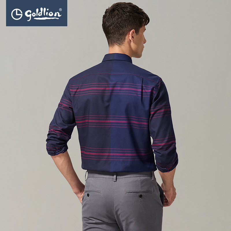 Kinley for spring and autumn men's shirt cotton blend color blend color block splicing for business casual long sleeve shirt wheelie]