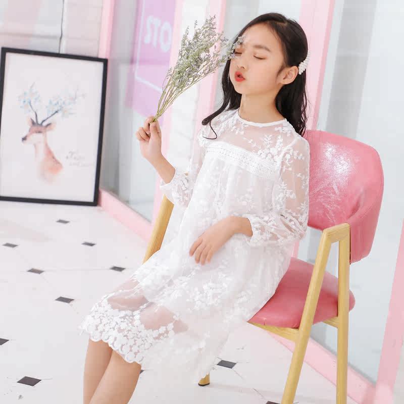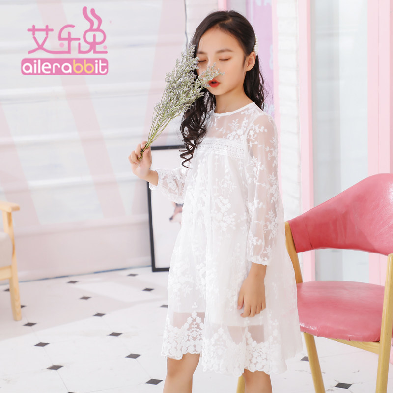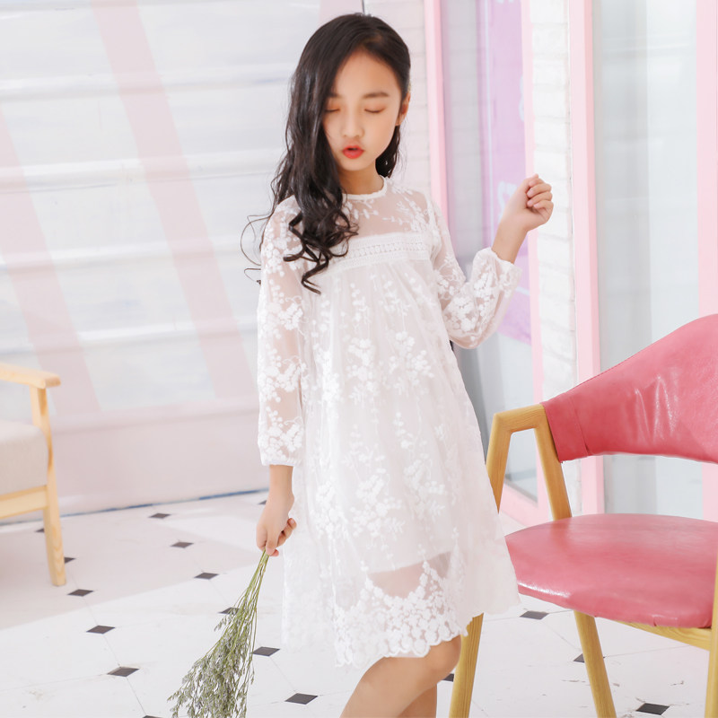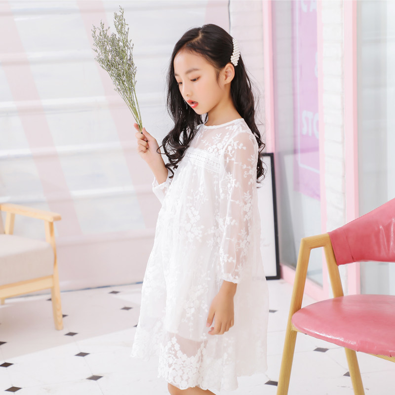 Girls summer clothes 2020 new spring and autumn Korean version of the Western style dress lace mesh seaside holiday beach princess dress