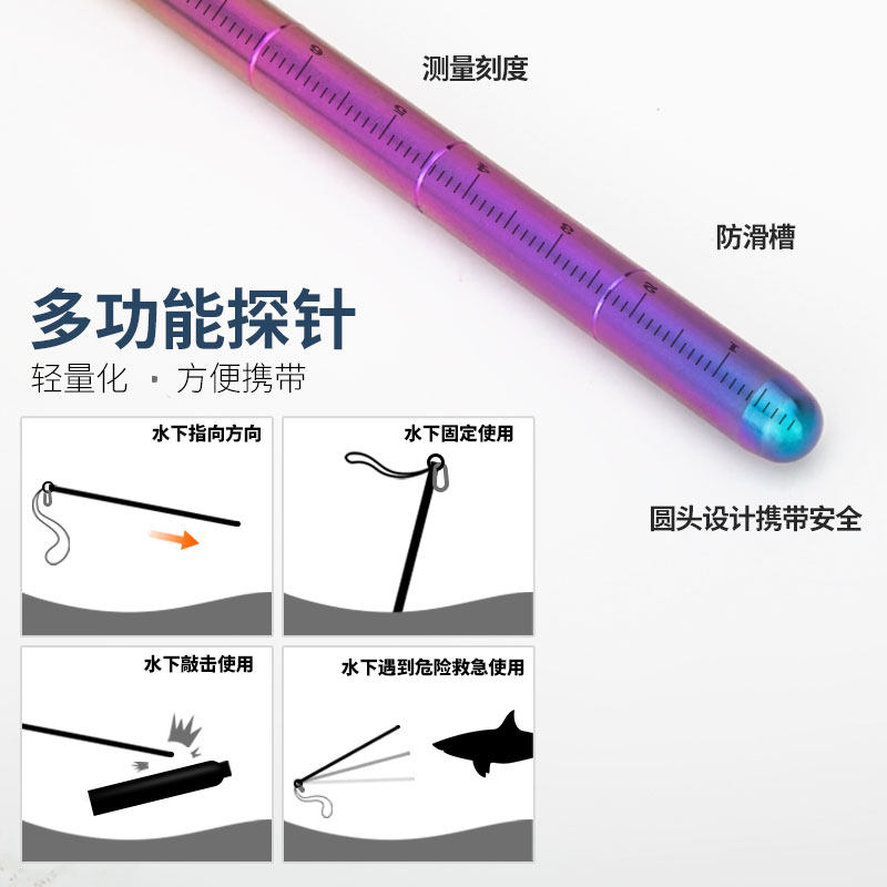 Titanium Titanium TiTo titanium alloy biding bar Water downpounding Snoop Corrosion Resistant Diving Probe With Hand Rope With Scales-Taobao
