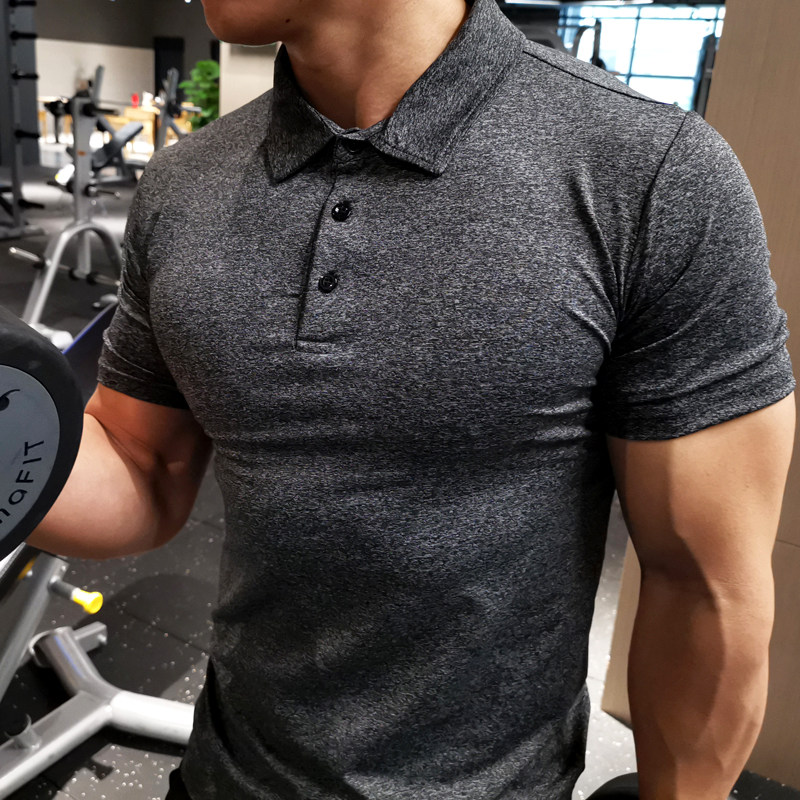 Fitness suit men's summer quick-drying breathable stretch tights Running training T-shirt Sports lapel short sleeve POLO shirt