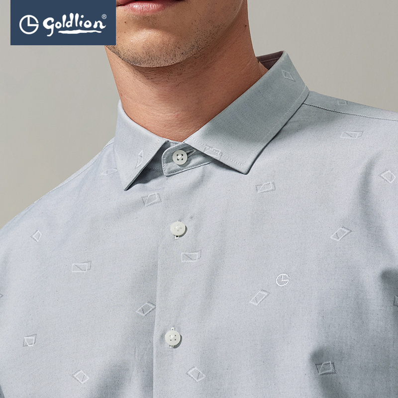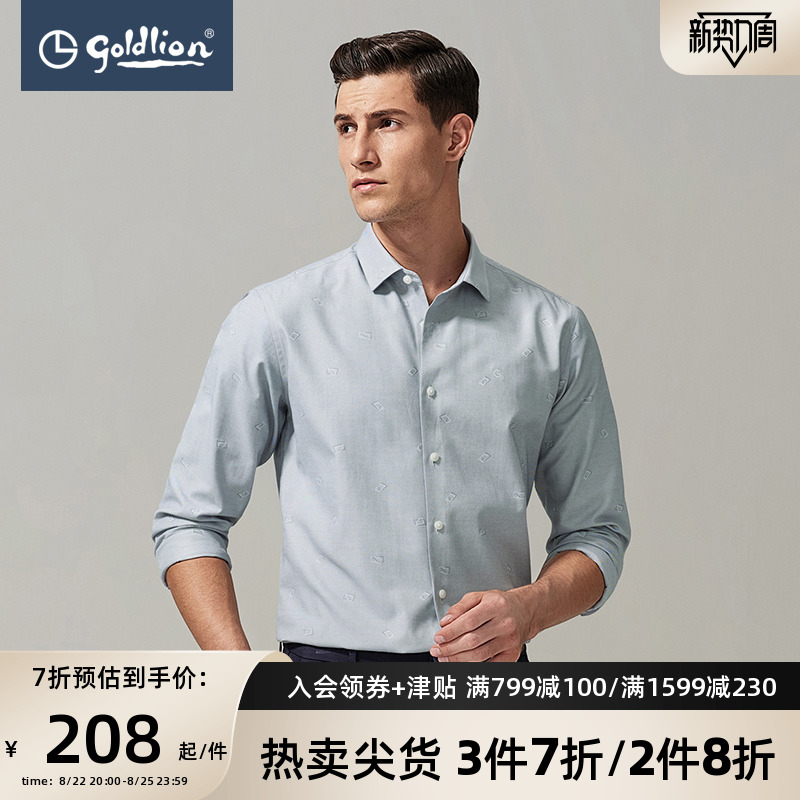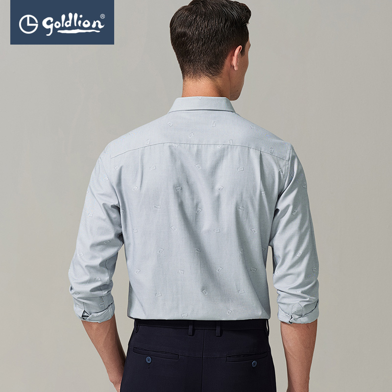 Gold Li Lai Autumn Men's Cotton Blend wears a comfortable pattern jacquard fashion casual long-sleeved shirt