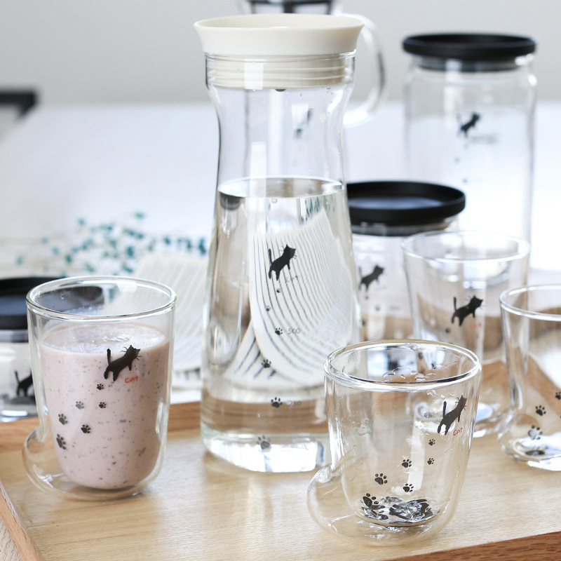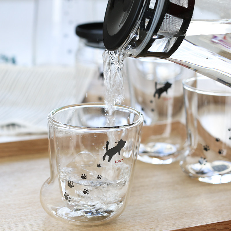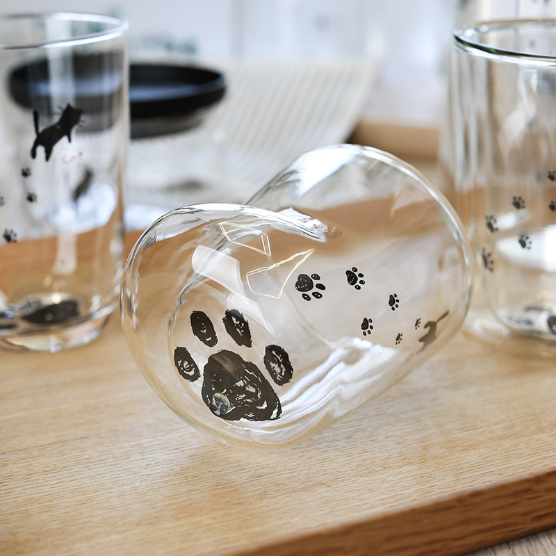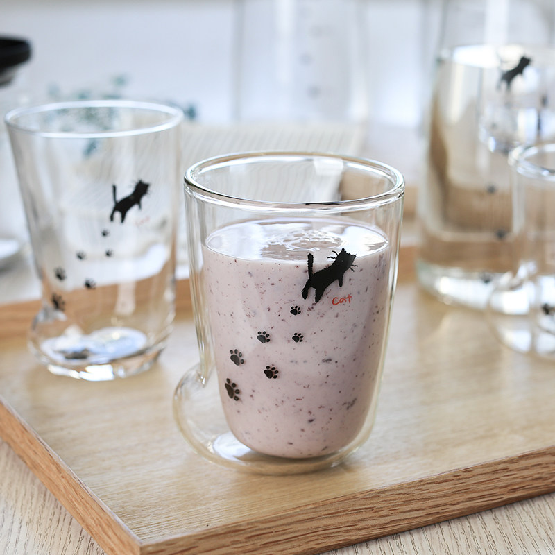 Japan imported double-layer heat-resistant transparent glass cup cute milk juice breakfast Net Red Girl Heart Cat Claw Cup