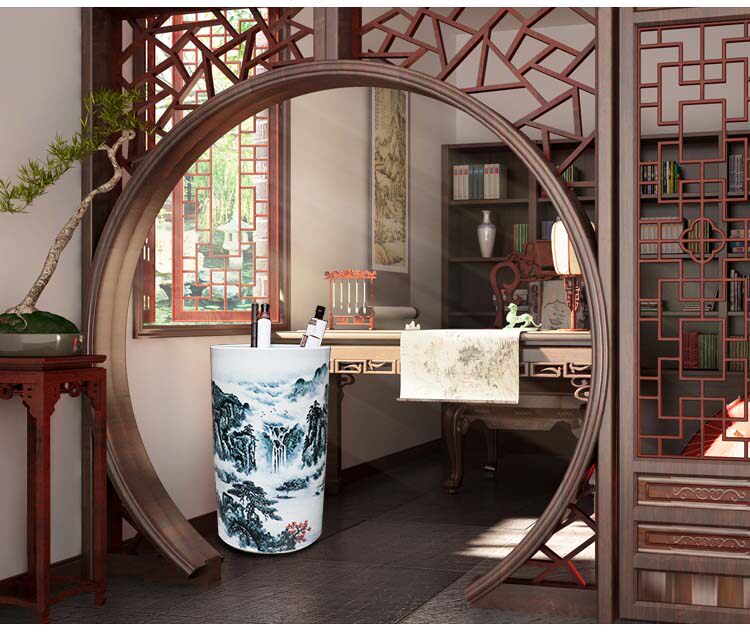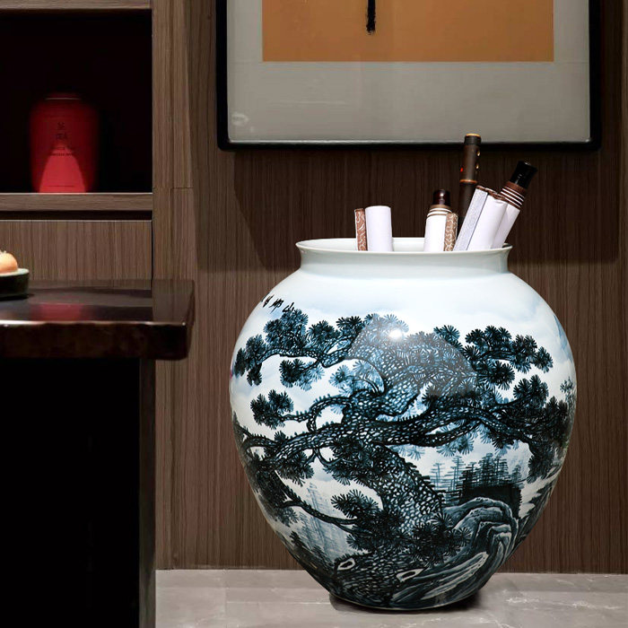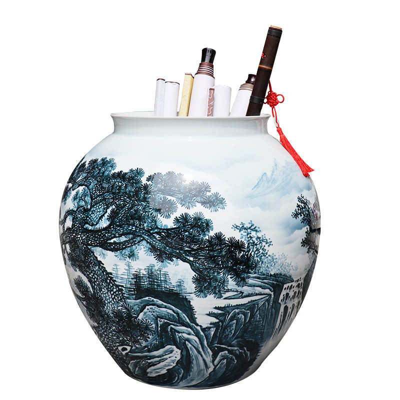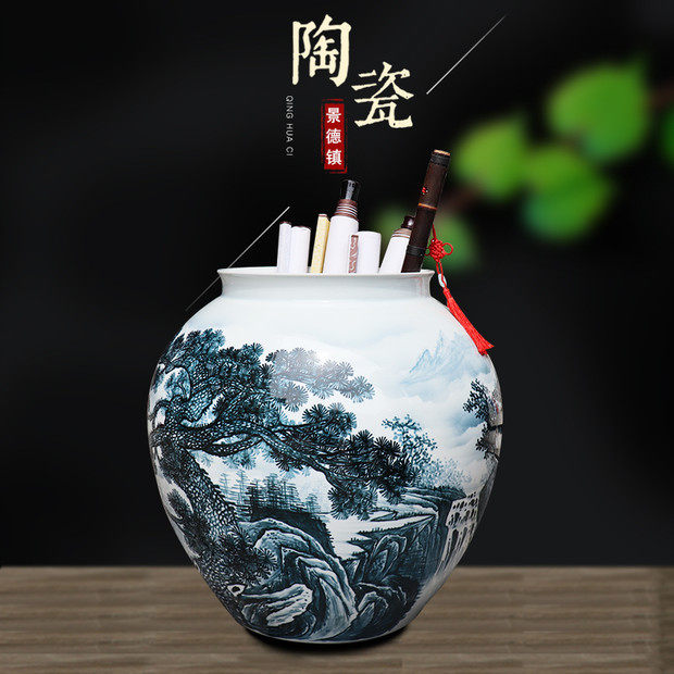 Jingdezhen Ceramic instrumental Chinese style floor painting Calligraphy And Calligraphy Barrel Character Painting Containing retro scroll cylinder home pendulum decoration minimalist decoration