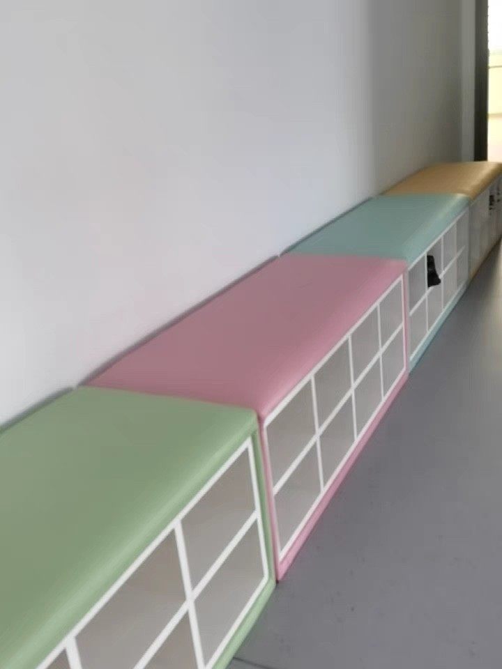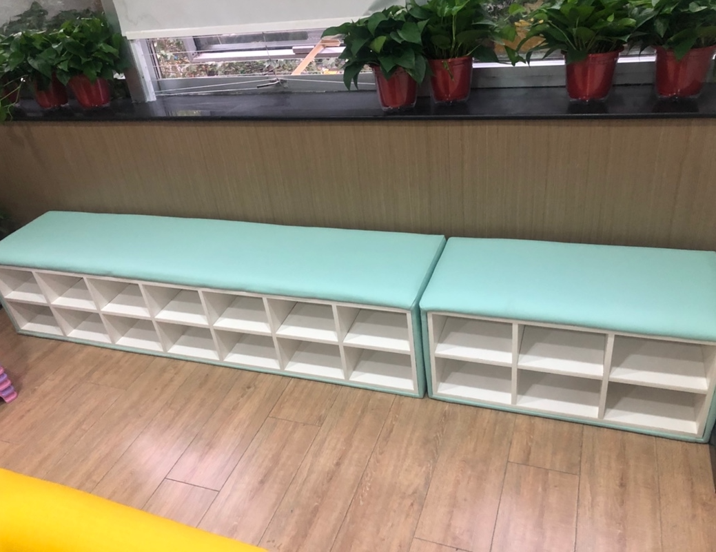 Customized early education kindergarten soft bag shoe cabinet long sofa solid wood bench children's shoes storage sofa stool stool