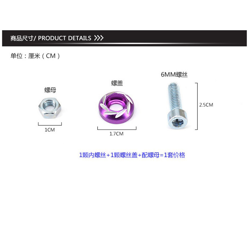 Pedal locomotive modification accessories Color carved license plate screws Electric car screw cap ghost fire modification parts