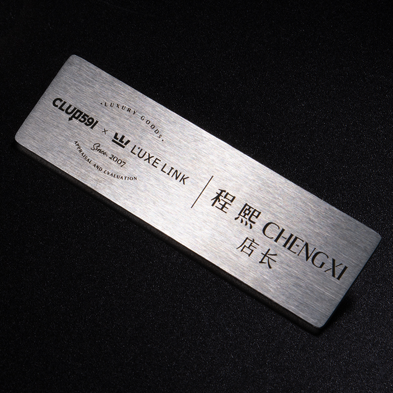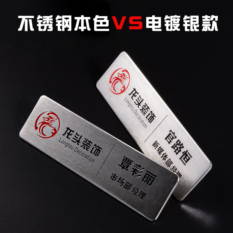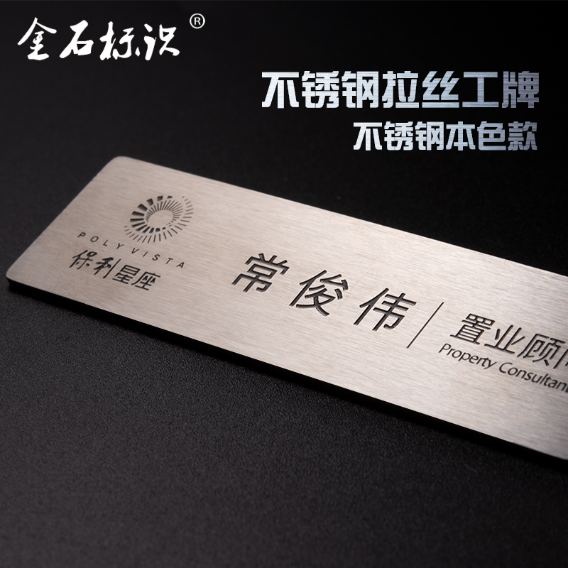 Stainless Steel Wire Drawing Chest Card Set As Home Ownership Consultant Engineer Signs Custom Metal Surnames Nameplate Anti-Scraping Flowers
