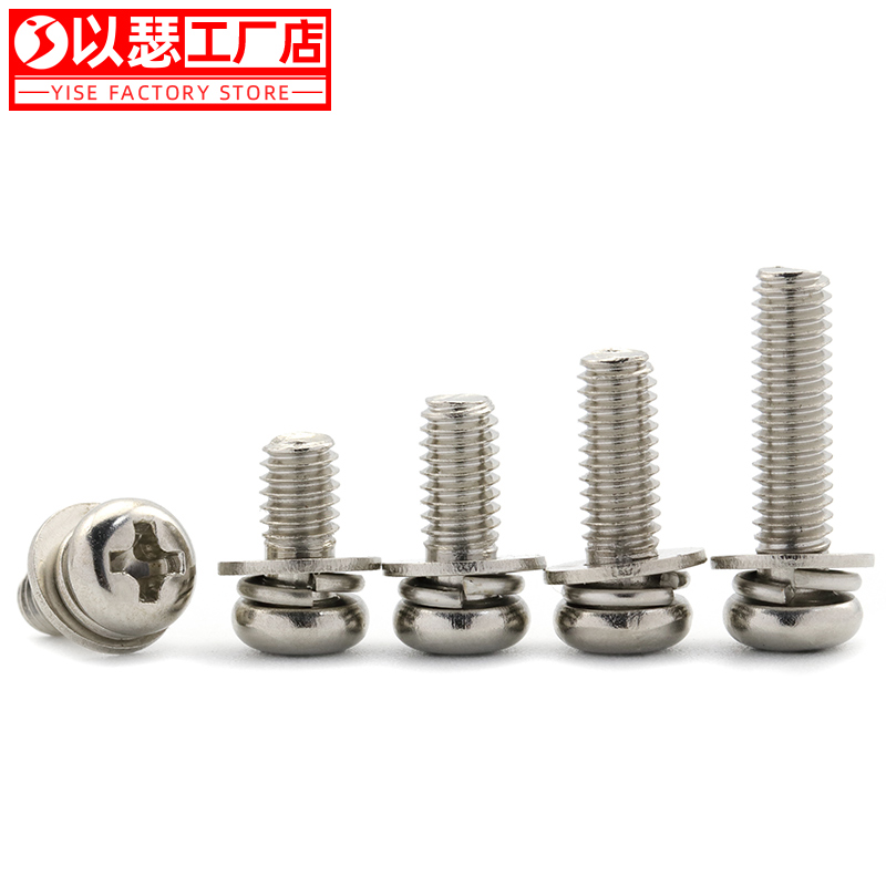 Nickel plated round head cross three combination screw flat pad elastic pad Pan head screw set M2M2 5M3M4M5M6