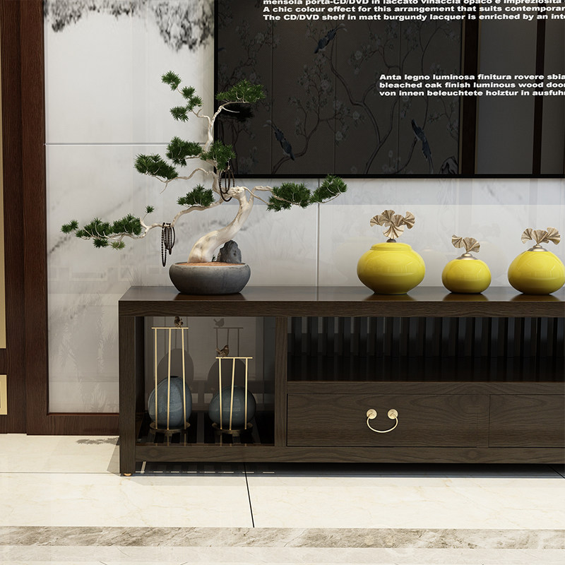New Chinese solid wood TV cabinet modern simple small apartment cabinet living room home Zen storage cabinet retro furniture