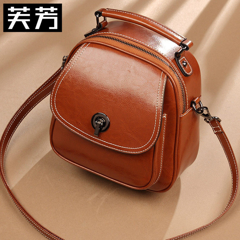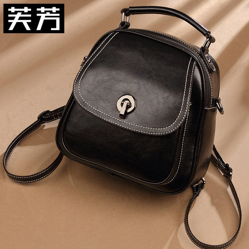 FFang double shoulder bag woman 2022 new genuine leather minimalist Korean version 100 hitch fashion casual back satchel bag with small shoulder bag