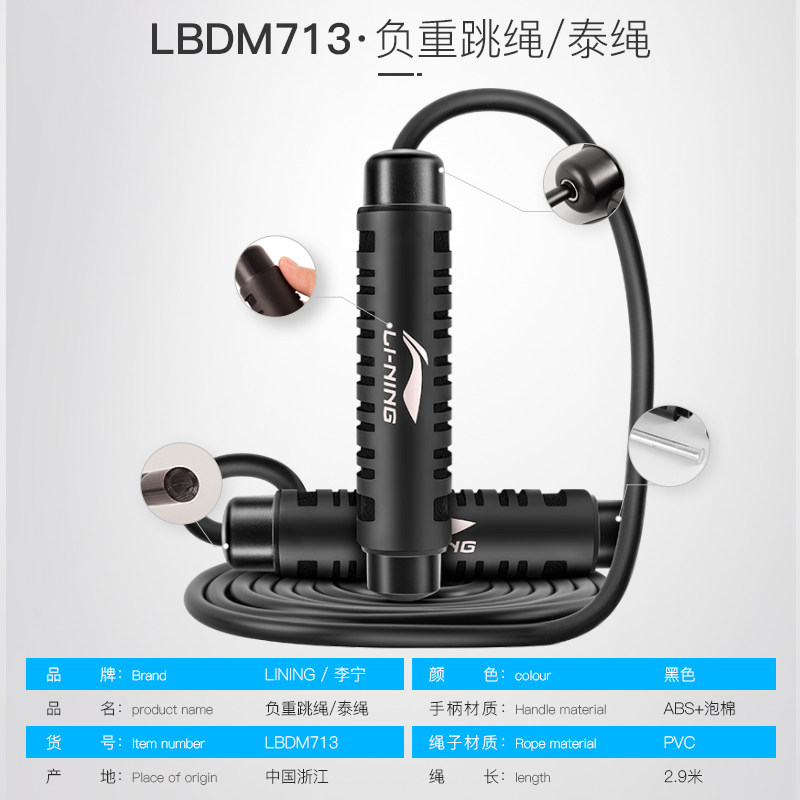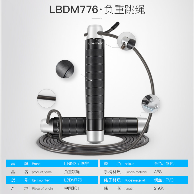 Li Ning Negative Weight Jump Rope Male Female Adult Weight Loss Burnt-fat Student Middle School Steel Wire Rope Sports Professional Fitness Training