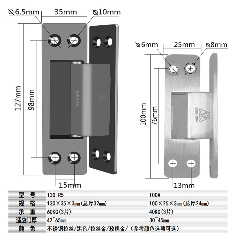 Regular (adapt to door thickness 42~65mm) Small (adapt to door thickness 30~45mm) Cabinet door (adapt to door thickness 23~32mm)