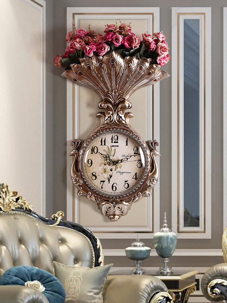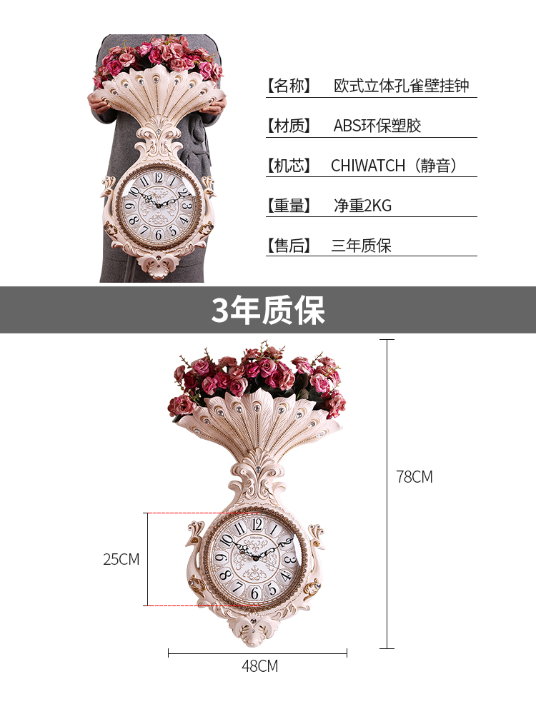 Peacock and watch hanging clock living room home fashion creative quartz clock Eurostyle luxury fashion hanging wall atmosphere ultra muted