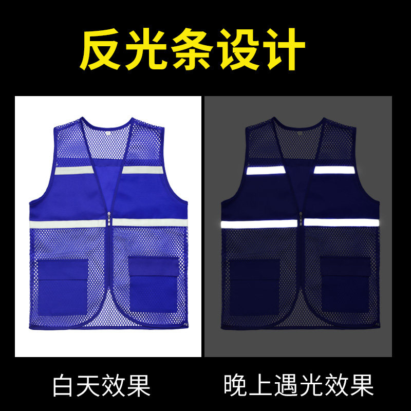Breathable mesh reflective vest volunteer Machia volunteers outside the delivery advertising grid for the delivery Machia