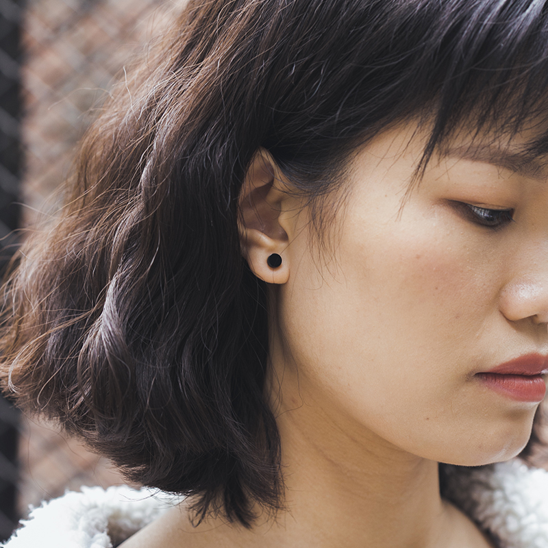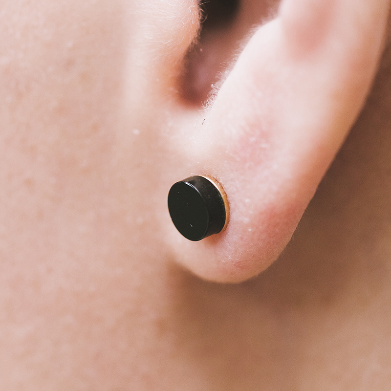 ruibeila men's earrings 18k gold single trendy men's simple black agate earrings couple