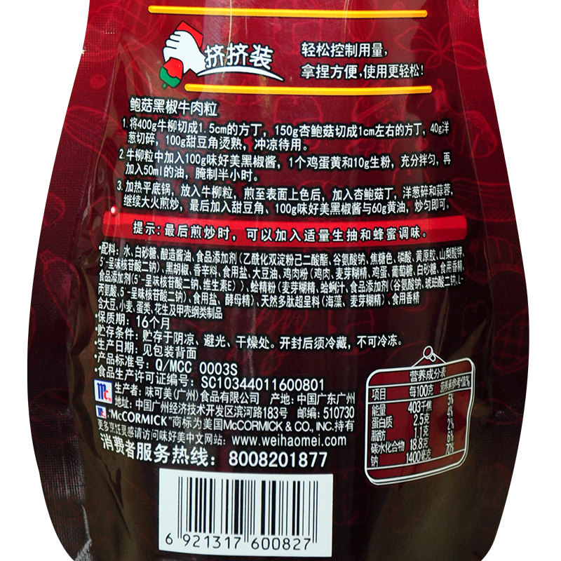 Weihaomei Black Pepper Sauce Spaghetti Sauce Combination Western Seasoning BBQ Steak Western Food Pasta Pizza Special Sauce